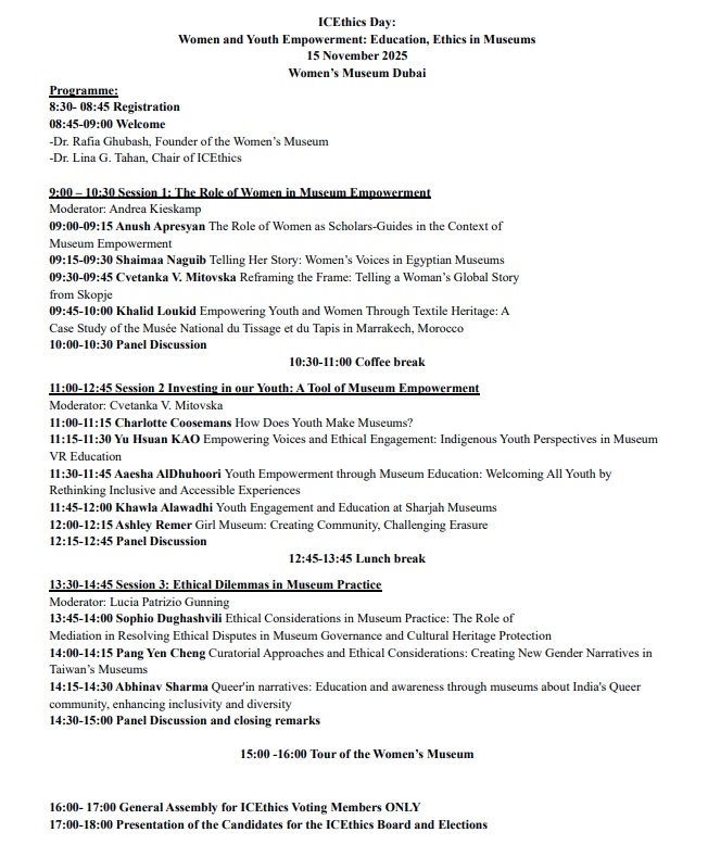 📍 ICEthics Day – Women’s Museum, Dubai | 15 November 2025 https://dubai2025.icom.museum/international-committees-day